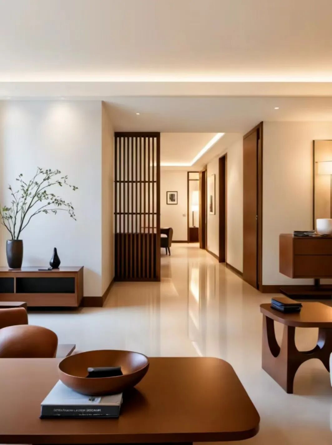 木格栅/移门:柔化空间边界,透光不透视,藏着中式“隔而不断”的智慧。
